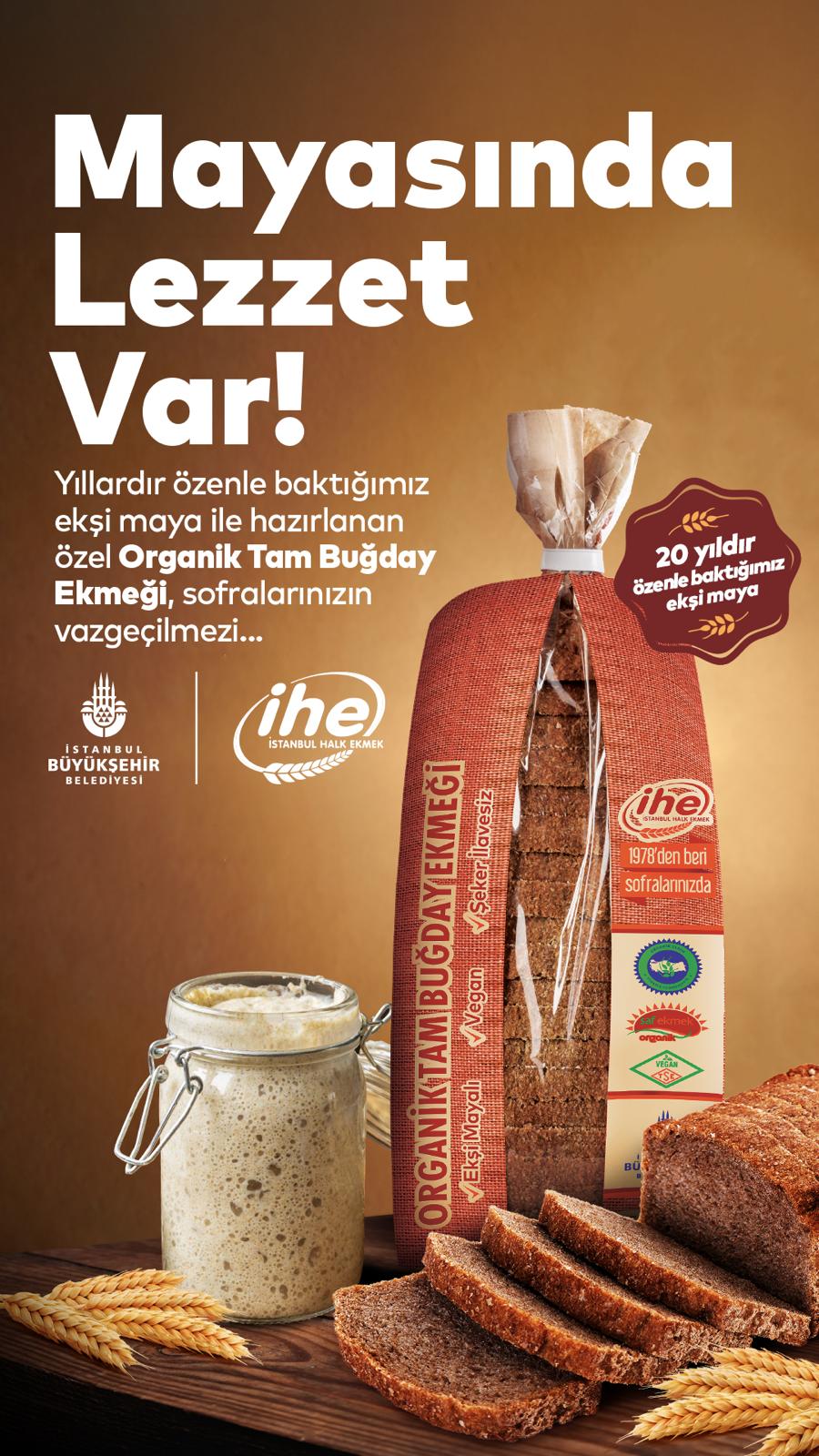 Organik Tam Buğday Ekmeği, yaklaşık 20 yıldır İstanbul Halk Ekmek bünyesinde her gün dışardan müdahale olmadan, kurum içinde beslenen ve kültürü korunan ekşi maya ile üretiliyor. Kendi mayasını kesintisiz biçimde yaşatan bu model, ürüne muadili olmayan bir nitelik kazandırıyor. Şekersiz, ekşi mayalı, vegan, tam buğdaylı ve organik olarak üretilen ürün hem pazarda ilk olma hem de 20 yıldır ekşi maya kültürünü koruyabildiği için sürdürülebilir olma özelliğine sahip.